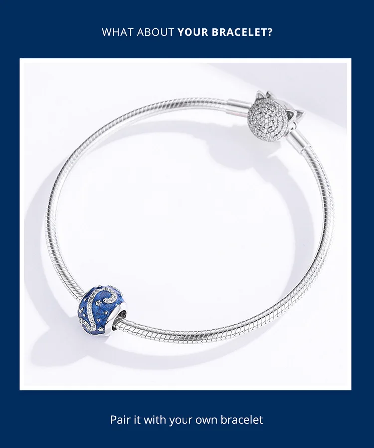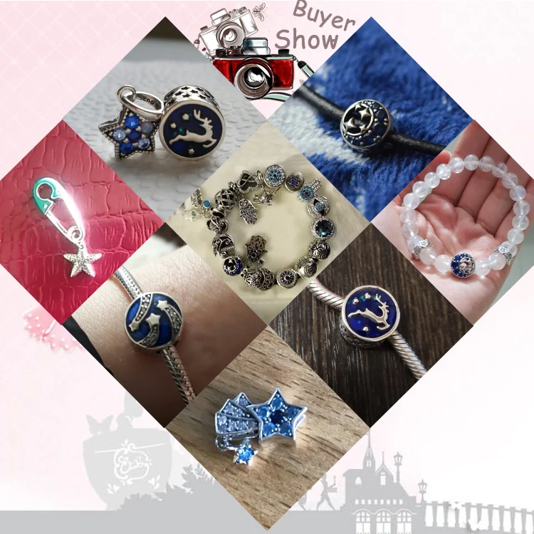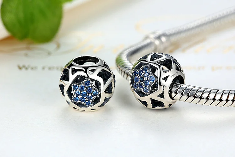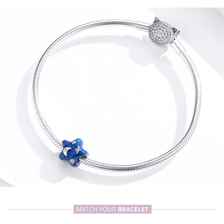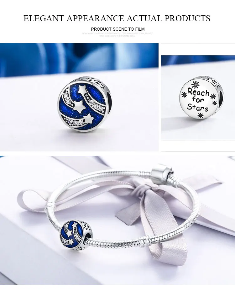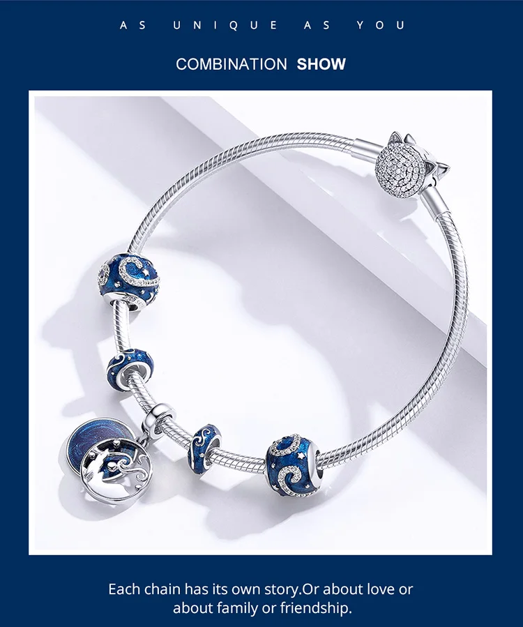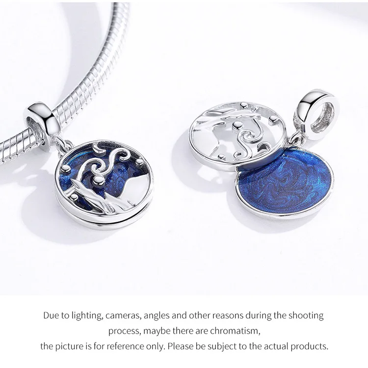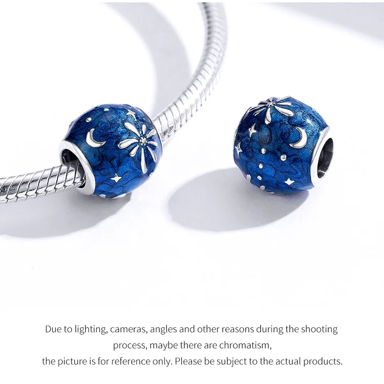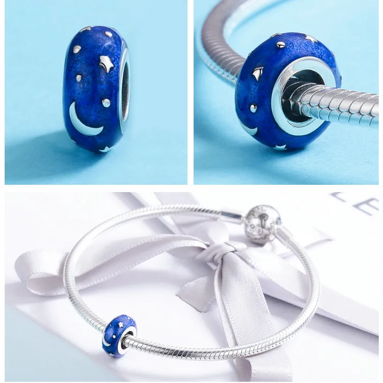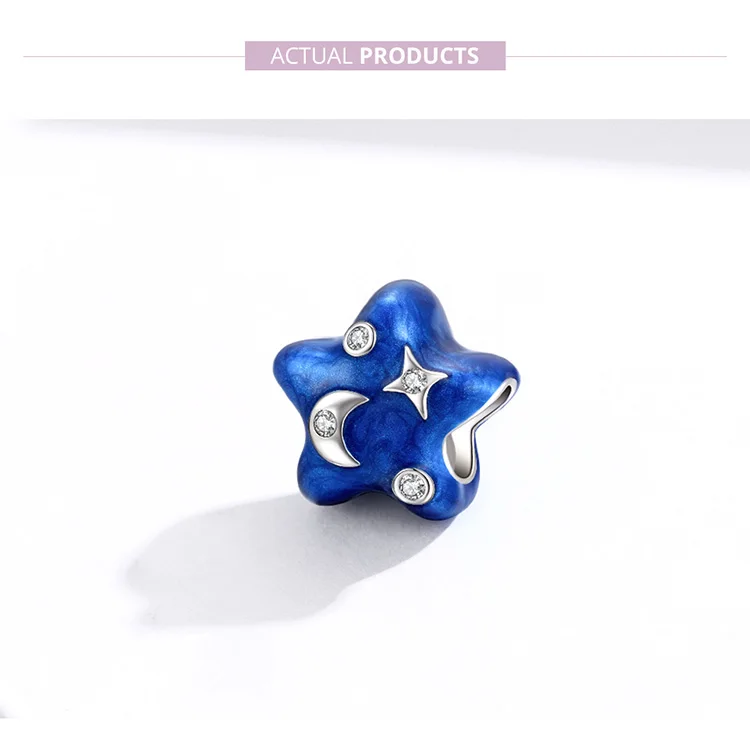 Women's 925 Sterling Silver Blue Charms Galaxy Star Moon