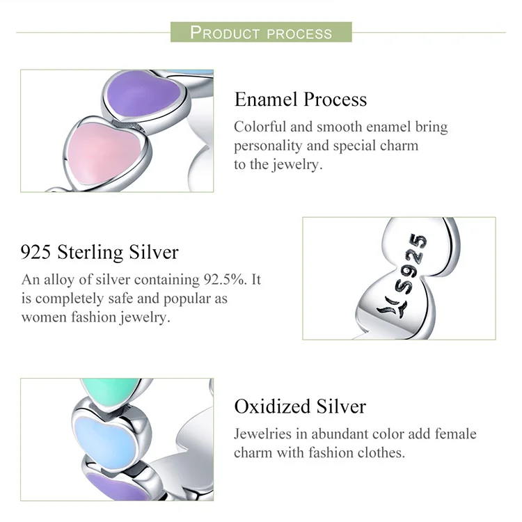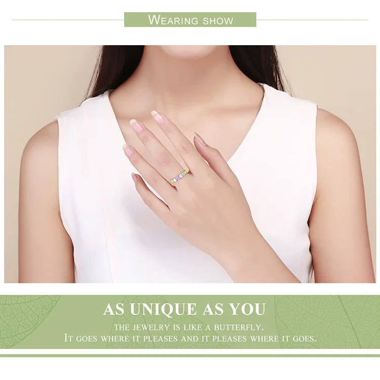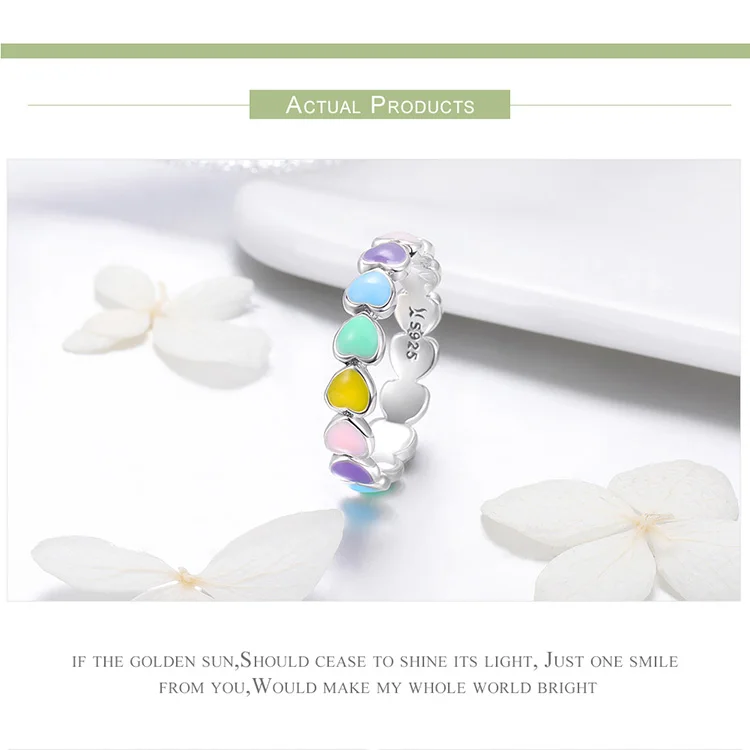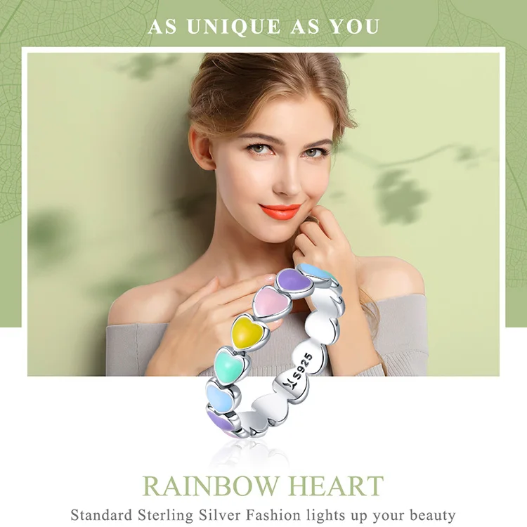 Women's 925 Sterling Silver Multi-Color Rainbow Heart Rings