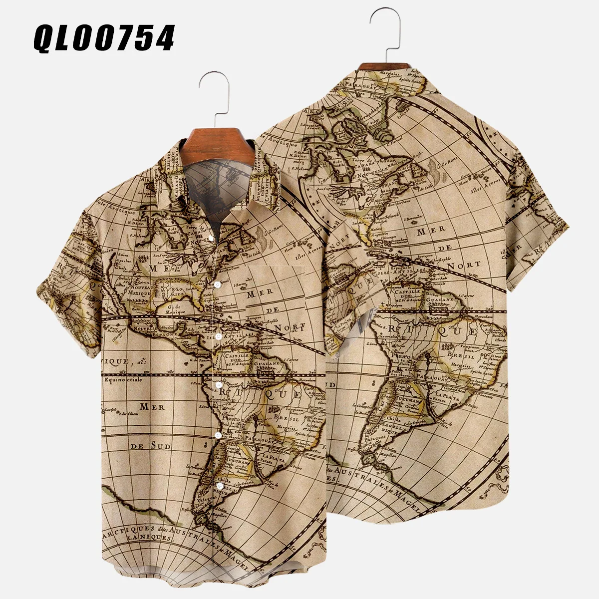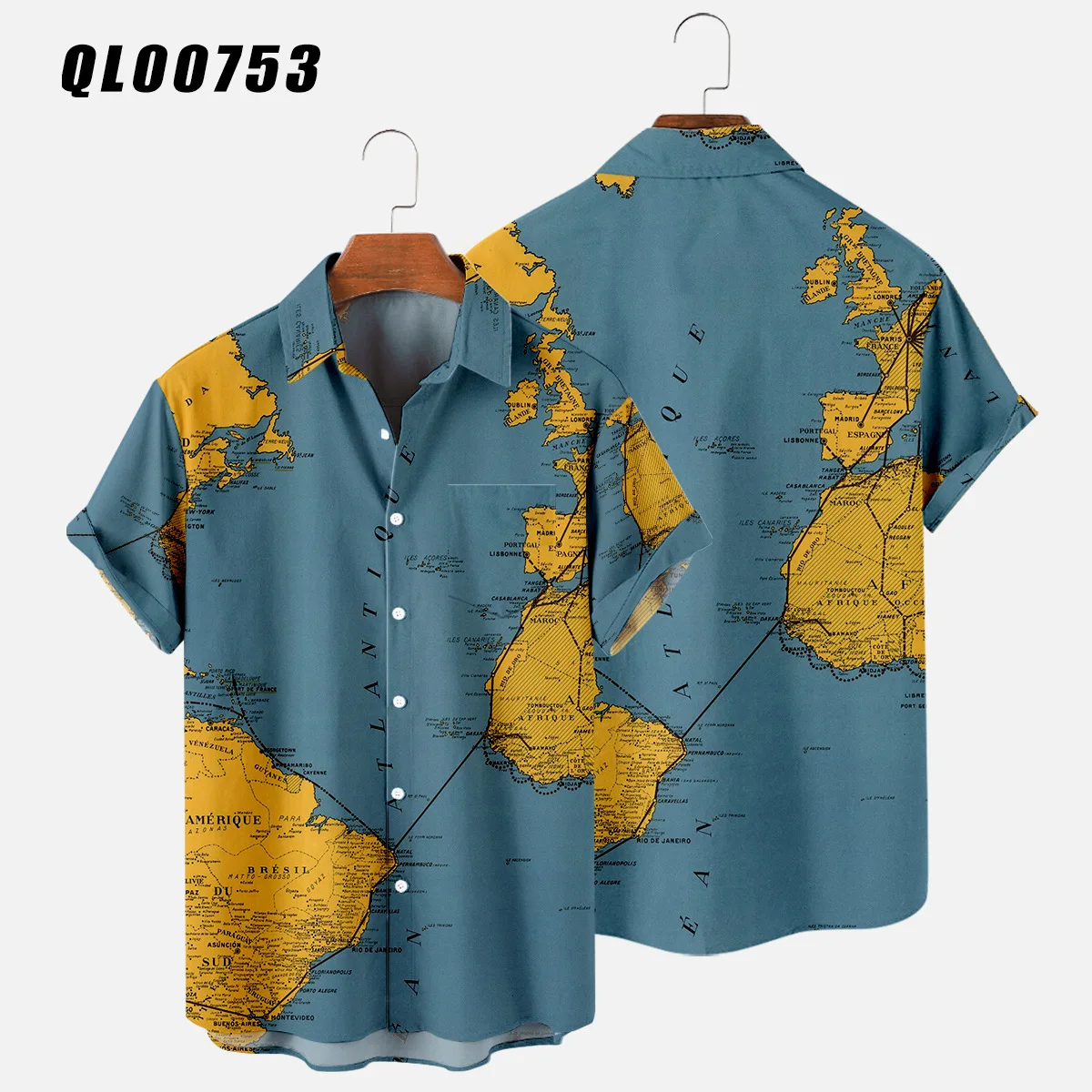 Hawaiian Shirts Map 3d Print Shirt Men's Women's Shirts Men's Casual Vocation Lapel Shirt Summer Beach Camisa Trip Blouse Casual