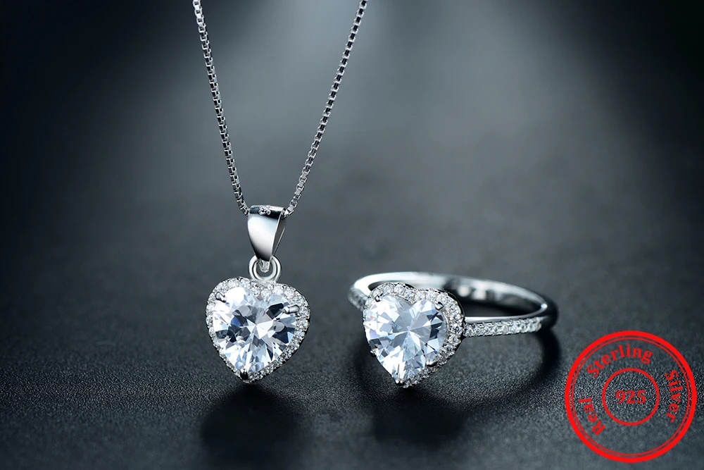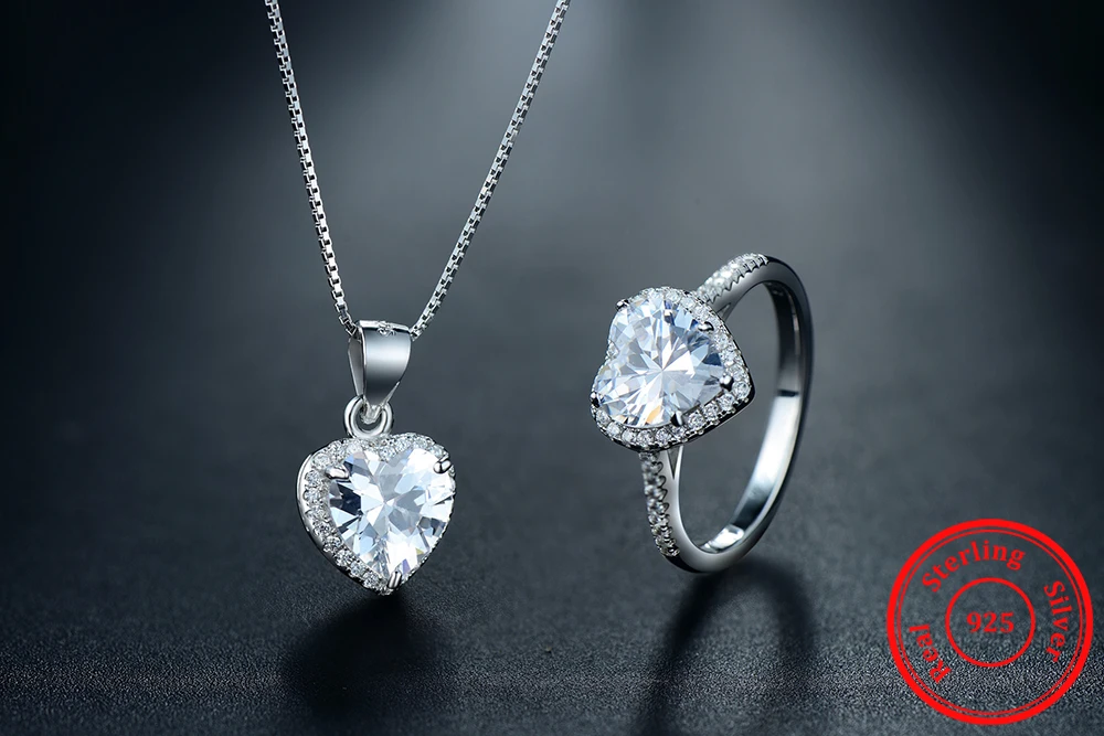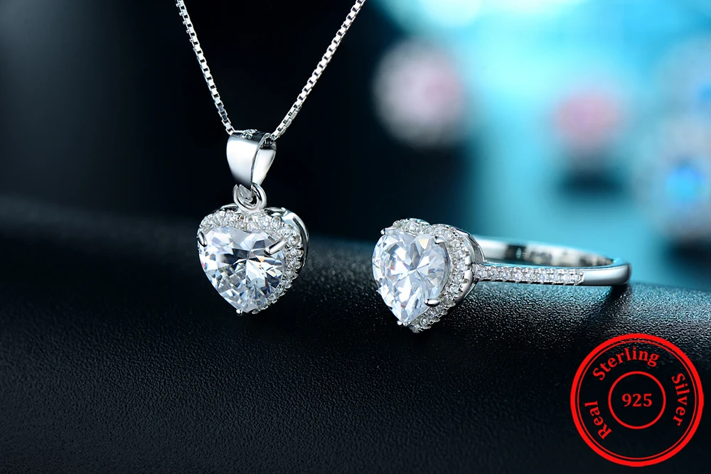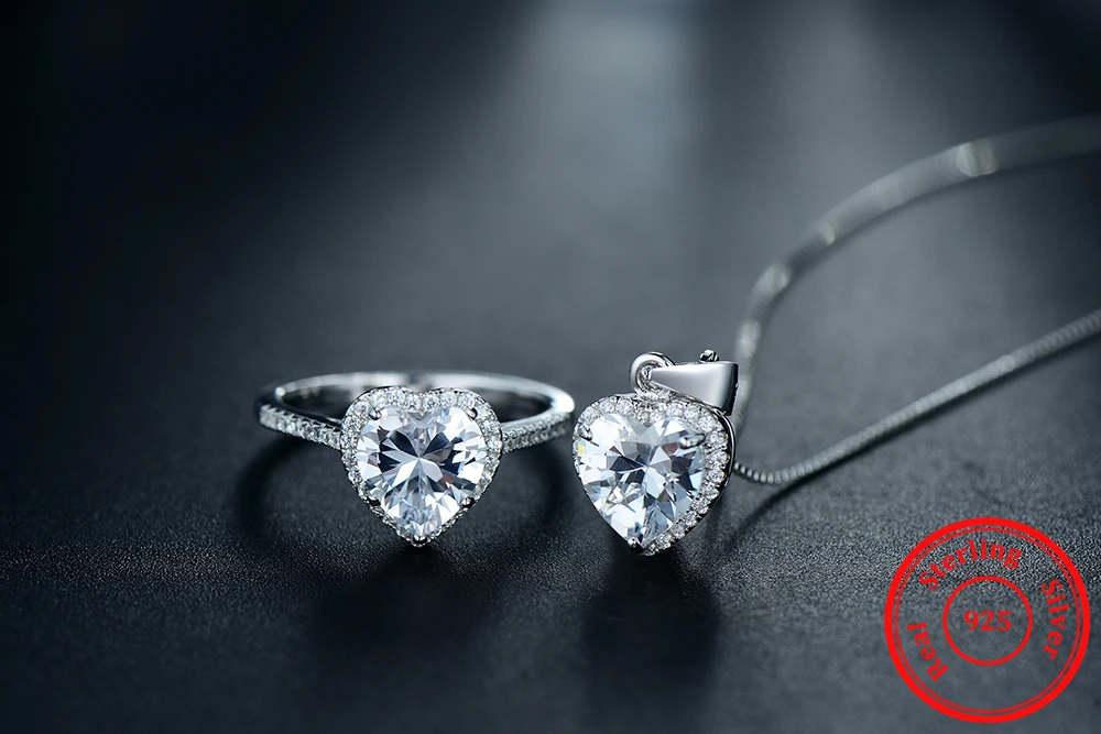 Women 925 Sterling Silver Sets Ring Natural Crystal Pendant