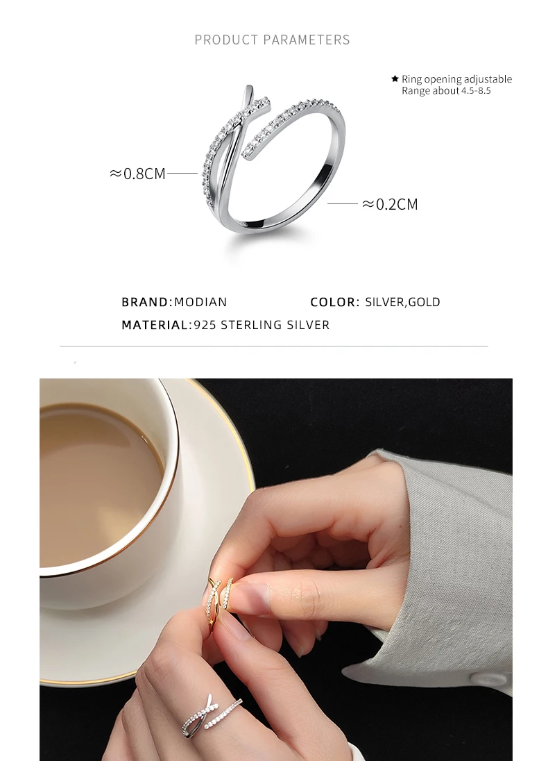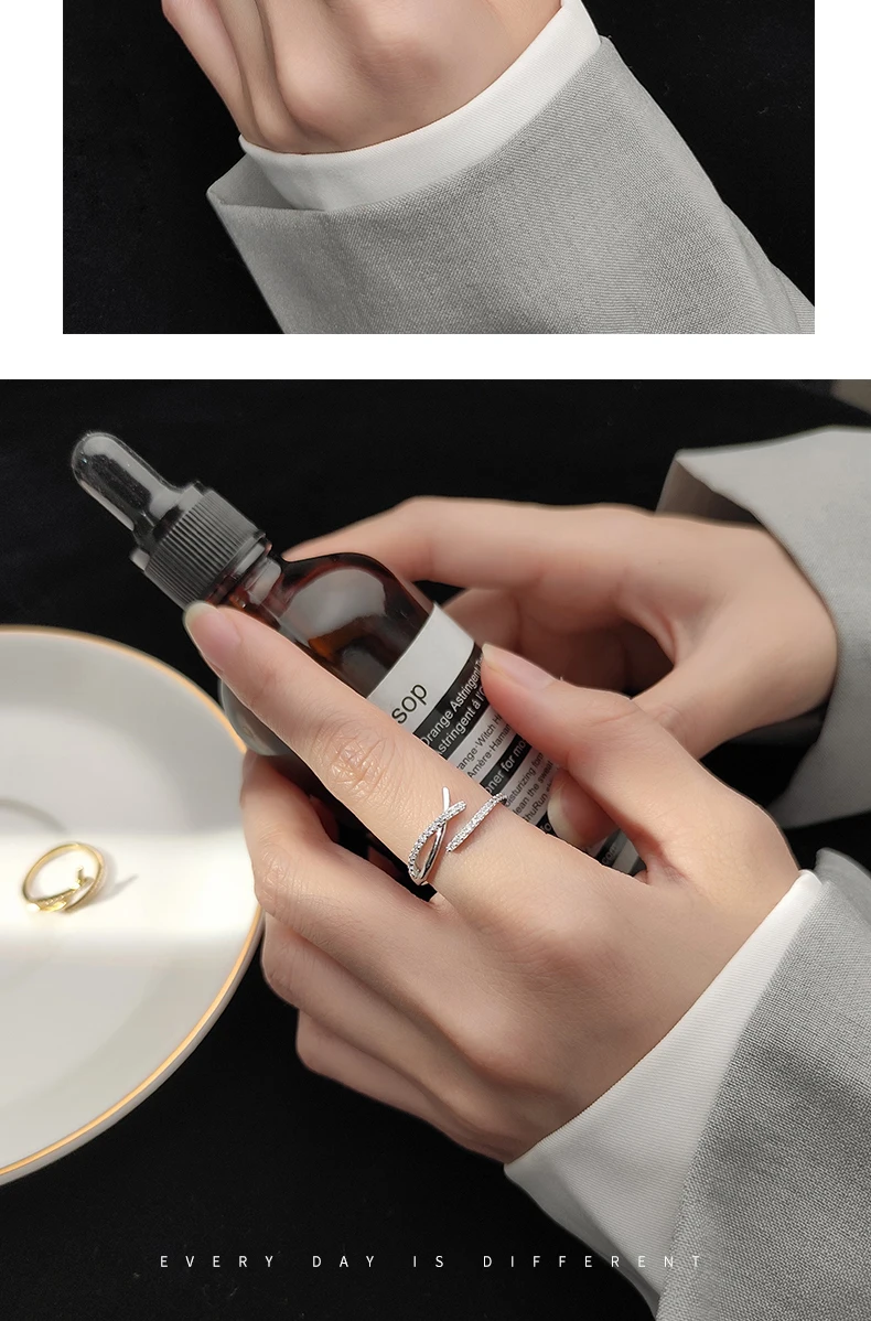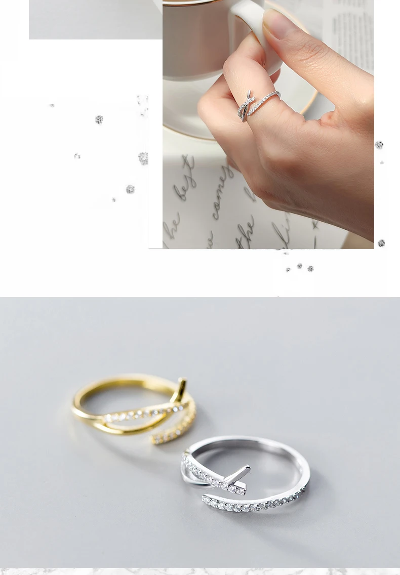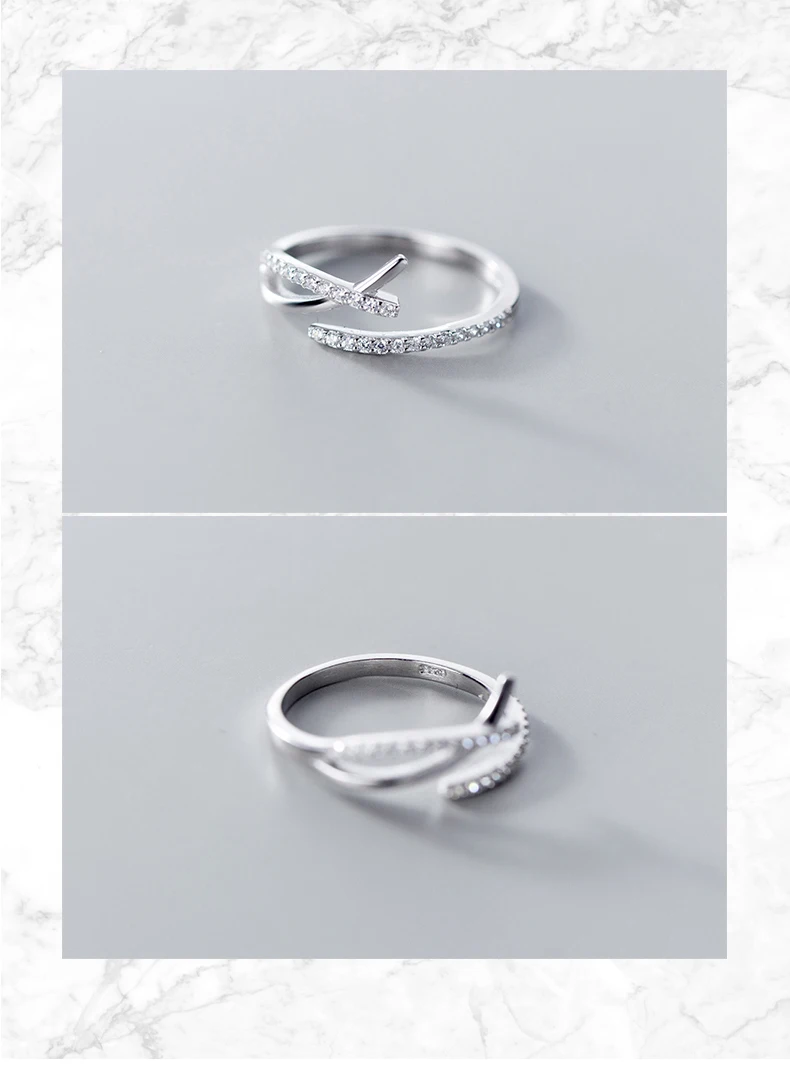 Women Cross Letter X Shape Open Adjustable Sterling Silver 925 Ring