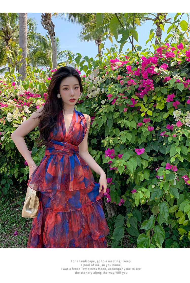 Same Style as Song Zhiya Ankle-Length Mori Style Printed Dress