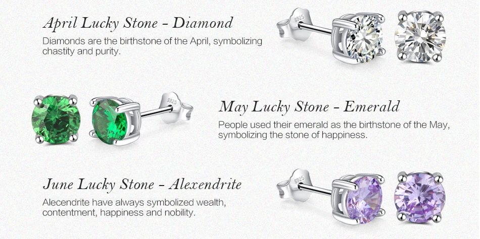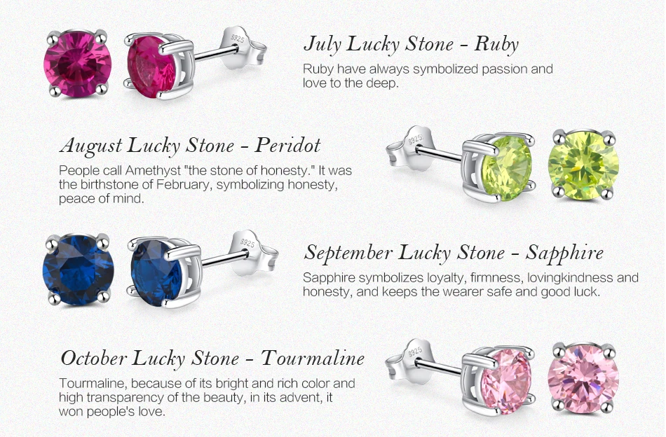 Effie Queen 925 Sterling Silver Stud Earrings For Women With AAA Cubic Zirconia Colorful Birthstone Earings Fashion Jewelry BE84