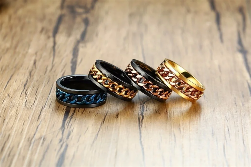 Men's 8mm Spinner Ring Stainless Steel Anti Stress
