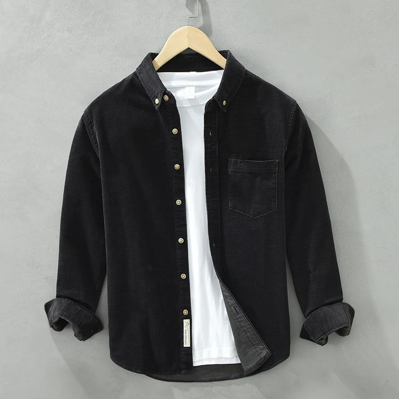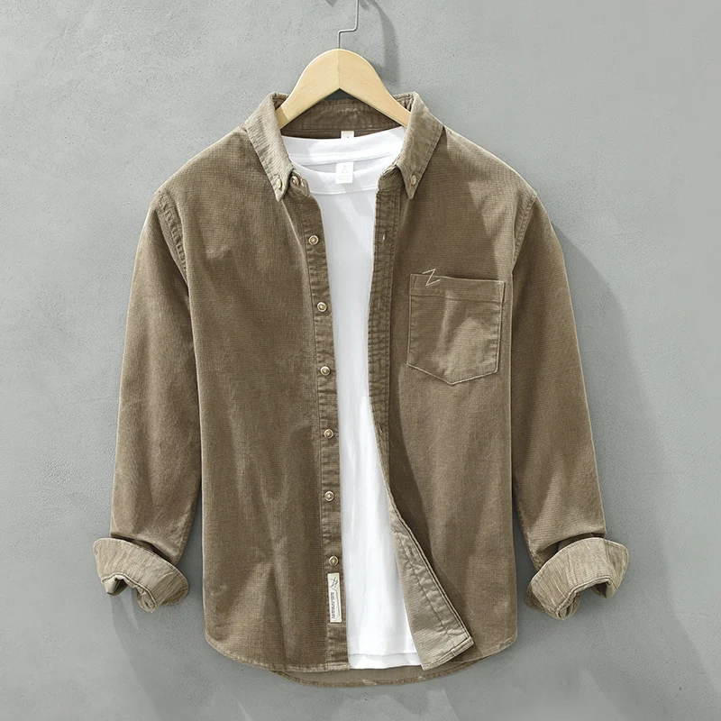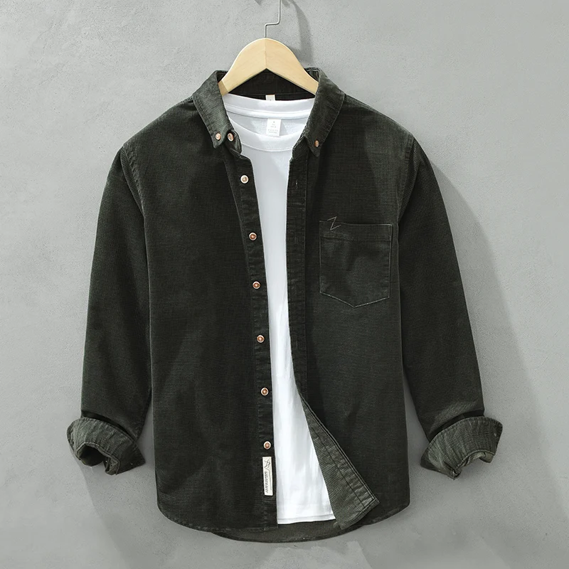 Casual corduroy Shirts for Men Autumn New Cotton Turn-down Collar shirt Men's Clothing